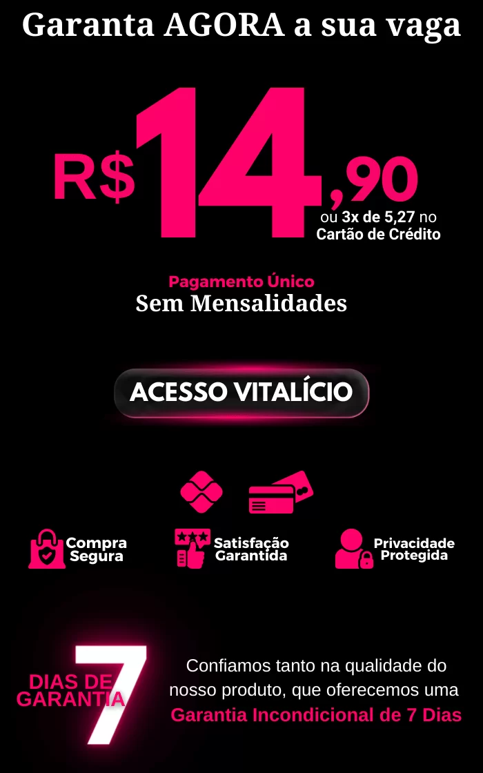 Você tem uma GARANTIA Incondicional de 7 DIAS, dada pela própria Plataforma.